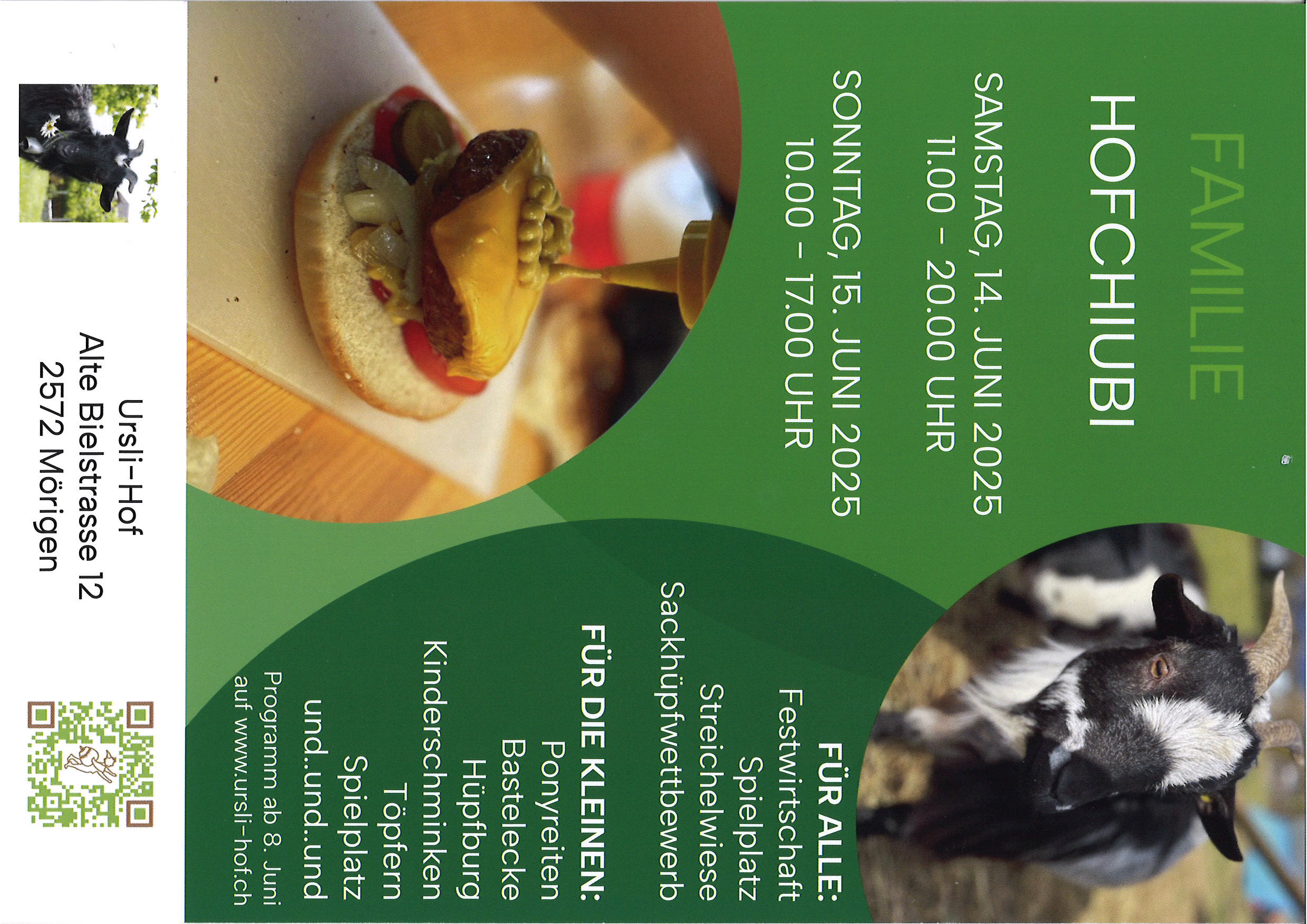 Samstag, 14. Juni 2025 11.00-20.00 Uhr und Sonntag, 15. Juni 2025 10.00-17.00 Uhr Familie Hofchilbi: